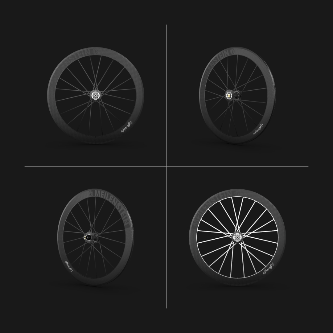 Nachdem die CAD-Daten aufbereitet waren, wurden die Materialien für alle Laufräder erstellt. Viele Materialien konnten, mit kleineren Anpassungen, aus meiner umfangreichen Materialbibliothek übernommen werden. Eine besondere Herausforderung stellte das Carbonfaser-Material dar, das je nach Lichteinfallswinkel unterschiedlich reagiert.